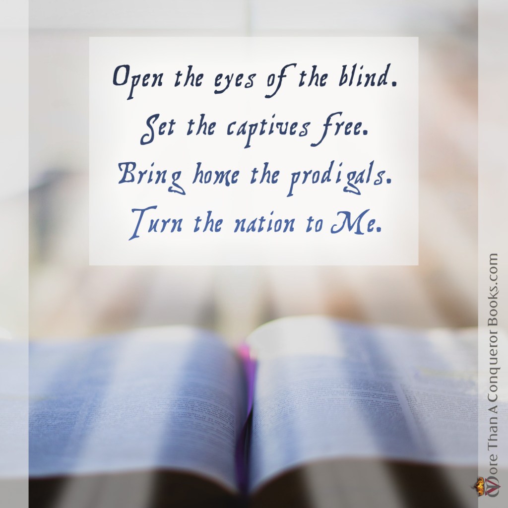 “Open the eyes of the blind. Set the captives free. Bring home the prodigals. Turn the nation to Me.”