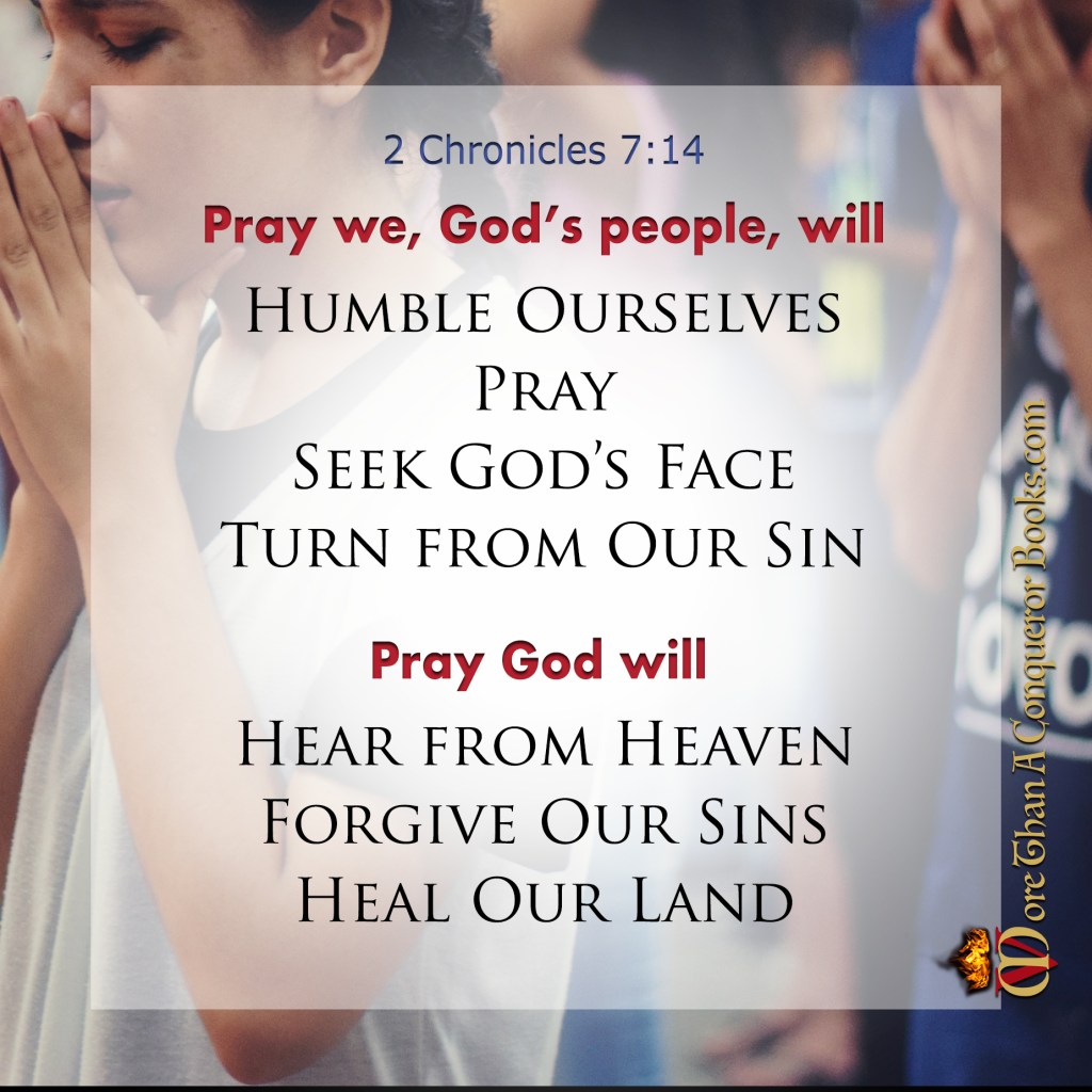 “If My people, who are called by My name, will 1. HUMBLE themselves and 2. PRAY and 3. SEEK MY FACE and 4. TURN FROM THEIR WICKED WAYS,