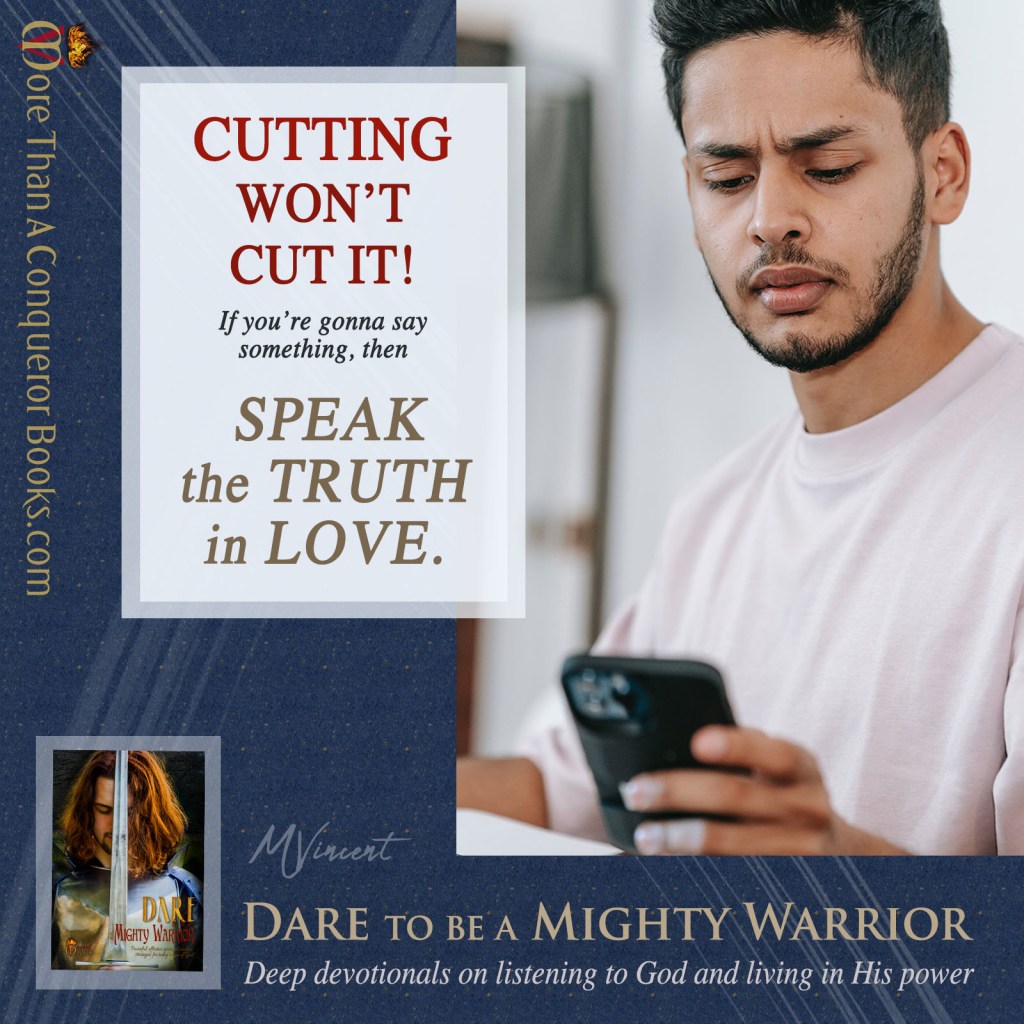 For a free guide to knowing God’s voice, resources for breaking free from strongholds and lies, visit MoreThanAConquerorBooks.com.