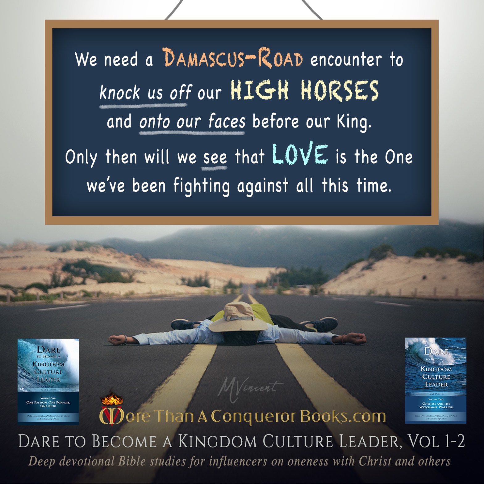 Let’s pray for a Damascus-road encounter with our King that knocks us off our high horses and onto our faces before Him, so our ears will be opened to hear His voice and our eyes to see that Love is the One we’ve been fighting against all along. Only then will He change our identity to become someone truly useful to His cause.