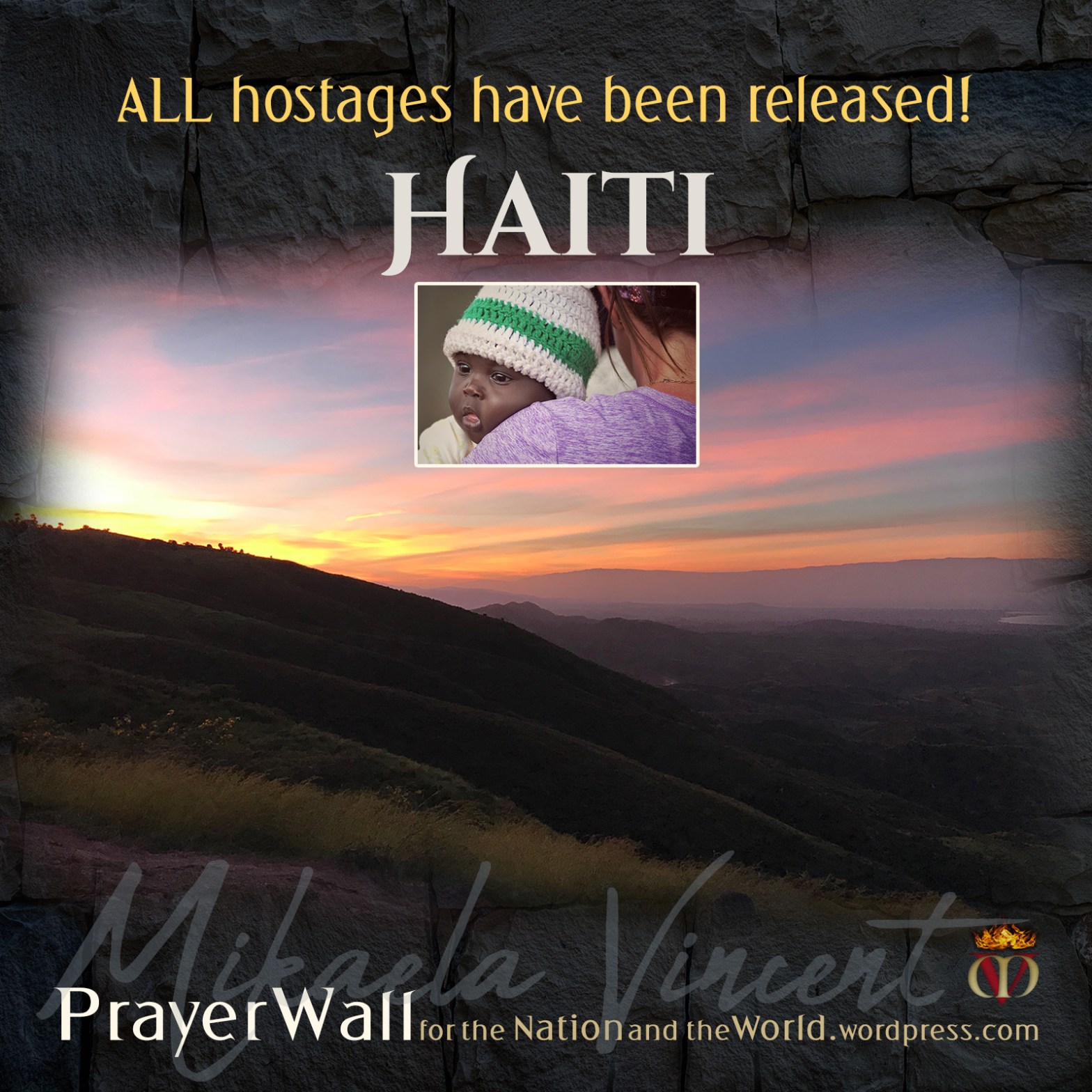 Lord, we praise You for this answer to prayer. Please heal each of these missionaries and their children from any trauma they experienced, and give them a beautiful time together with family and friends this Christmas. Do not let their captors forget the love, joy, peace, forgiveness and especially the Gospel message they shared while held hostage. Keep bringing those images of grace and words of truth to their minds, haunting them day and night and pressing into their minds and hearts such a desperate hunger for You, they will lay down their weapons, release all their other prisoners, and surrender to You as Lord. Awaken all of Haiti from out of darkness into Your Light. In Your name. Amen.