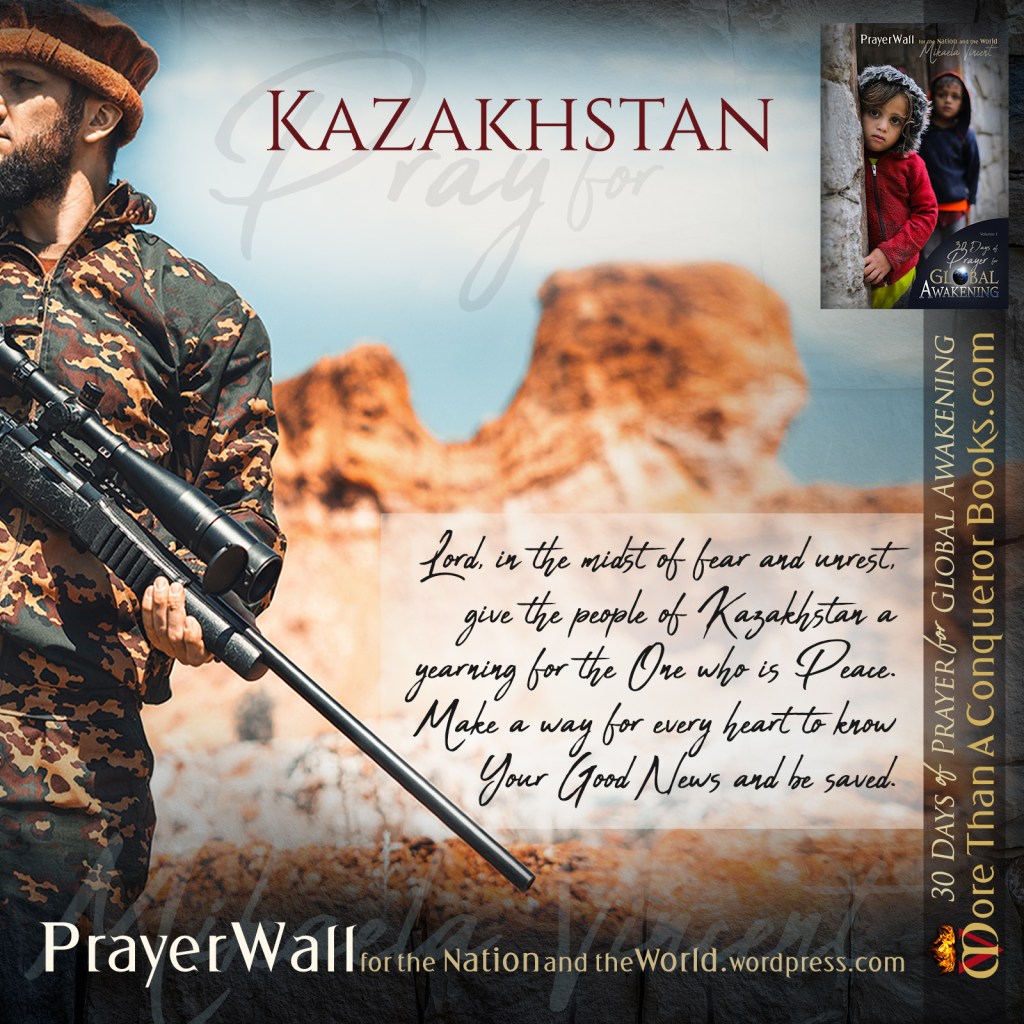 Lord, as troops fill the streets and the future is uncertain, please awaken a hunger for true Peace in every heart. You created the peoples of Kazakhstan unique for Your purposes, and yet still more than 70% of their population is unreached. How long, O Lord, must they continue in darkness without Your light? Come, O God, please, to them now. Invade their country, not with human troops to force a temporary earthly peace, but with Your angel armies of Light. Crush the true enemy, Satan, who has sought to keep them hopeless and cut off from true freedom. They need You, Lord. Please, don’t let even one more person die without knowing about Your love and grace and the freedom that is found in a personal relationship with Christ. Open the way for Your Gospel to go into every corner of Kazakhstan, penetrating the more than 20 unreached people groups that still have no Christian among them and into the places where the church is persecuted and Christians are hidden. Make a way for the Bible to be translated into every language and Your people to blast holes in the darkness with their prayers of light. Bring Christians into the paths of those who hunger for You, and empower them to preach Your Good News boldly and in Your Spirit, with a demonstration of Your goodness, love, and signs and wonders by Your hand. If these are the last days, O God, then do not leave the people of Kazakhstan behind, but grab them up in Your hands and carry them to a place where they can finally have a chance to truly know You. Bring into power leaders and authorities who will open the doors for Your Good News to be freely preached all throughout the land. Open the eyes of the blind so they will see You as You truly are. Open their ears so they will hear of Your love and be saved. Make a way where there seems to be no way for Your Kingdom to reign in Kazakhstan. Awaken every heart to You, O God. For no earthly government or fuel price can fill the emptiness in their hearts. Only You can give them the abundant life they seek. John 10:10.