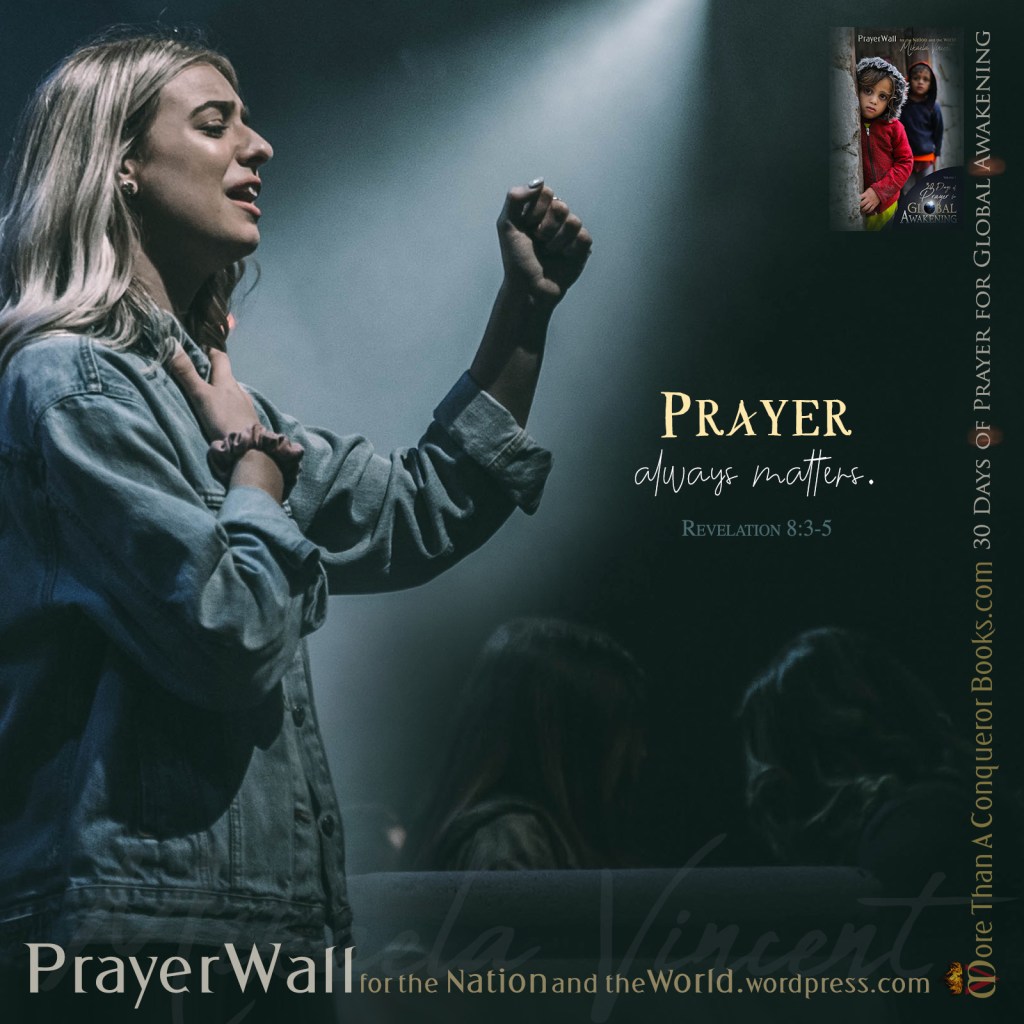 30 Days of Prayer for Global Awakening: Pray for Awakening to happen all throughout the world through this beautiful prayer book for your quiet times, church prayer meetings, or other prayer groups. Available at MoreThanAConquerorBooks.com. Sign up for daily prayer guides to continue praying for the world to awaken to God’s love at PrayerWallfortheNationandtheWorld.wordpress.com. For a free guide to knowing God’s voice, and for guided prayer journals, day planners, Bible studies, children’s books, and more on listening to God and walking in oneness with Christ and others by inspirational author Mikaela Vincent, visit MoreThanAConquerorBooks.com.