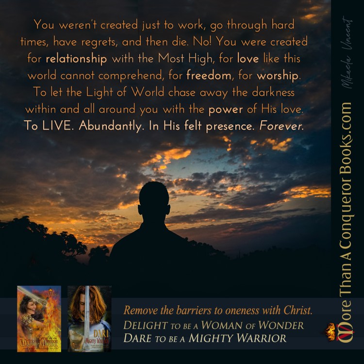 For a *free guide to knowing God’s voice, and deep Bible studies and prayer journals for all ages on breaking free from strongholds and removing the barriers to oneness with Christ and others, visit MoreThanAConquerorBooks.com.