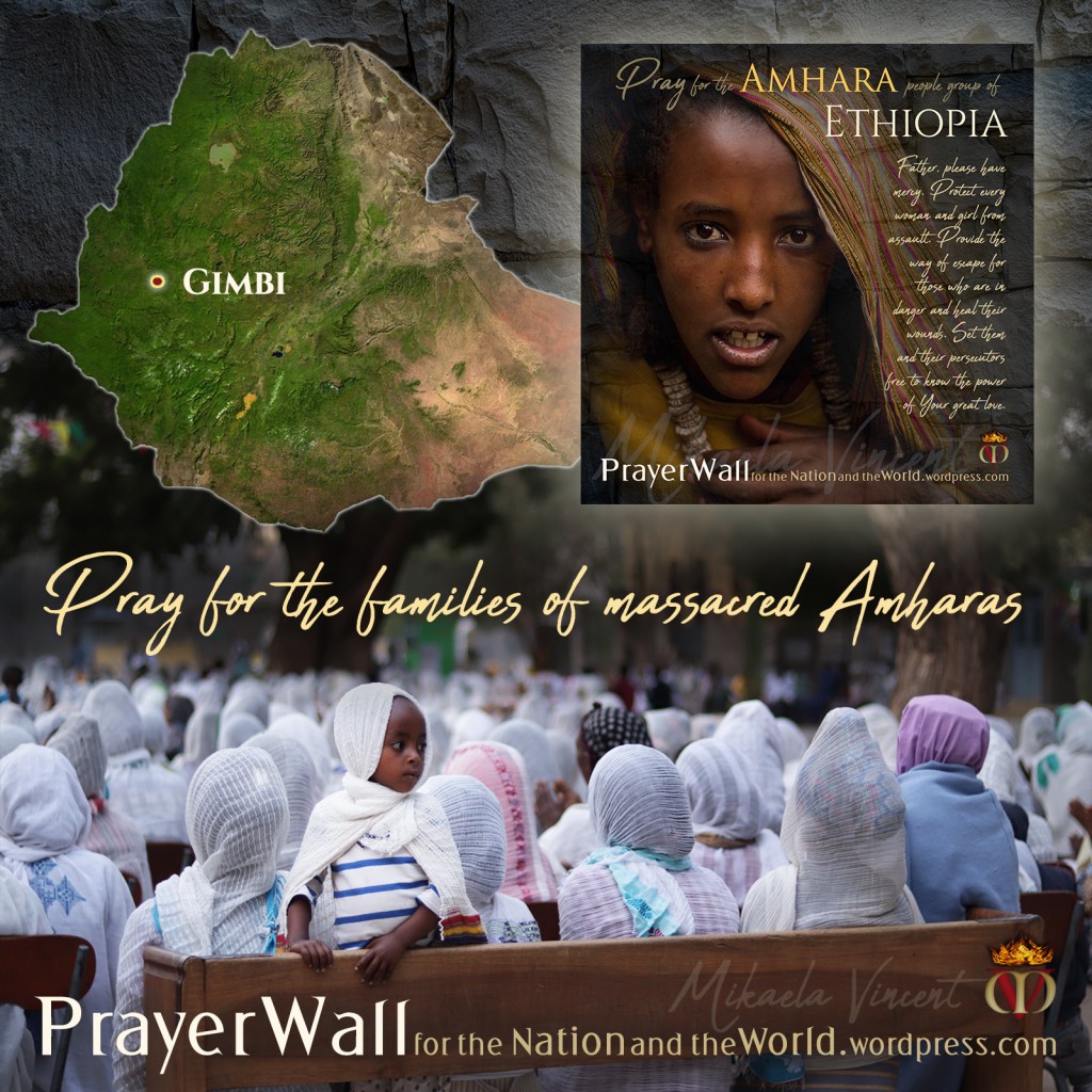 O Lord God, please have mercy on the Amharas and all the peoples of Ethiopia. Put an end to prejudice, hatred, violence and terrorism. March in Your angel armies to fight for the innocent and rescue children’s futures. Bring terrorists to their knees before You in repentance and surrender. Open their eyes to see Your angels blocking their way, and strike them with such fear of You they will drop their weapons and choose Love instead. Give every Oromo such a deep hunger for You they will abandon their wars to seek You with all their hearts and find You. Every time an Oromo comes to You, O God, fill them with such joy, peace and love all will see the difference and be amazed. Abundantly bless both Oromo and Amhara Christian families, so they will also abundantly bless their lost neighbors. Fill violent criminals with remorse over atrocities, and awaken their hearts to You, O God.