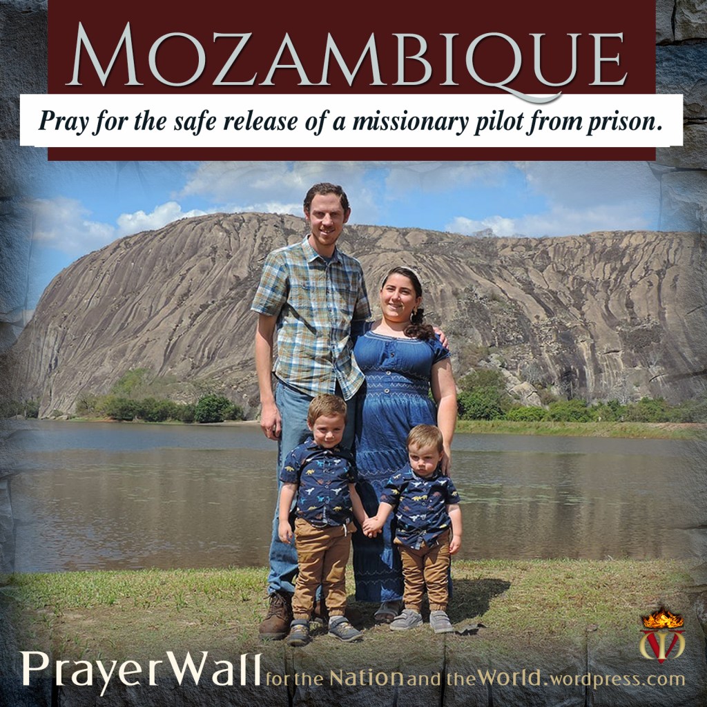 Here at the Prayer Wall, we have been asking the Lord for the quick release of a pilot with Mission Aviation Fellowship, Ryan Koher, and two South Africans who helped with his ministry. The three are being held in a maximum security prison in Mozambique on an accusation of “supporting terrorism” because of an intended routine flight to deliver vitamins and other needed supplies to orphanages trapped by ongoing jihadist violence in the northern part of the country. No formal charges have been filed yet these three months they’ve been in prison.