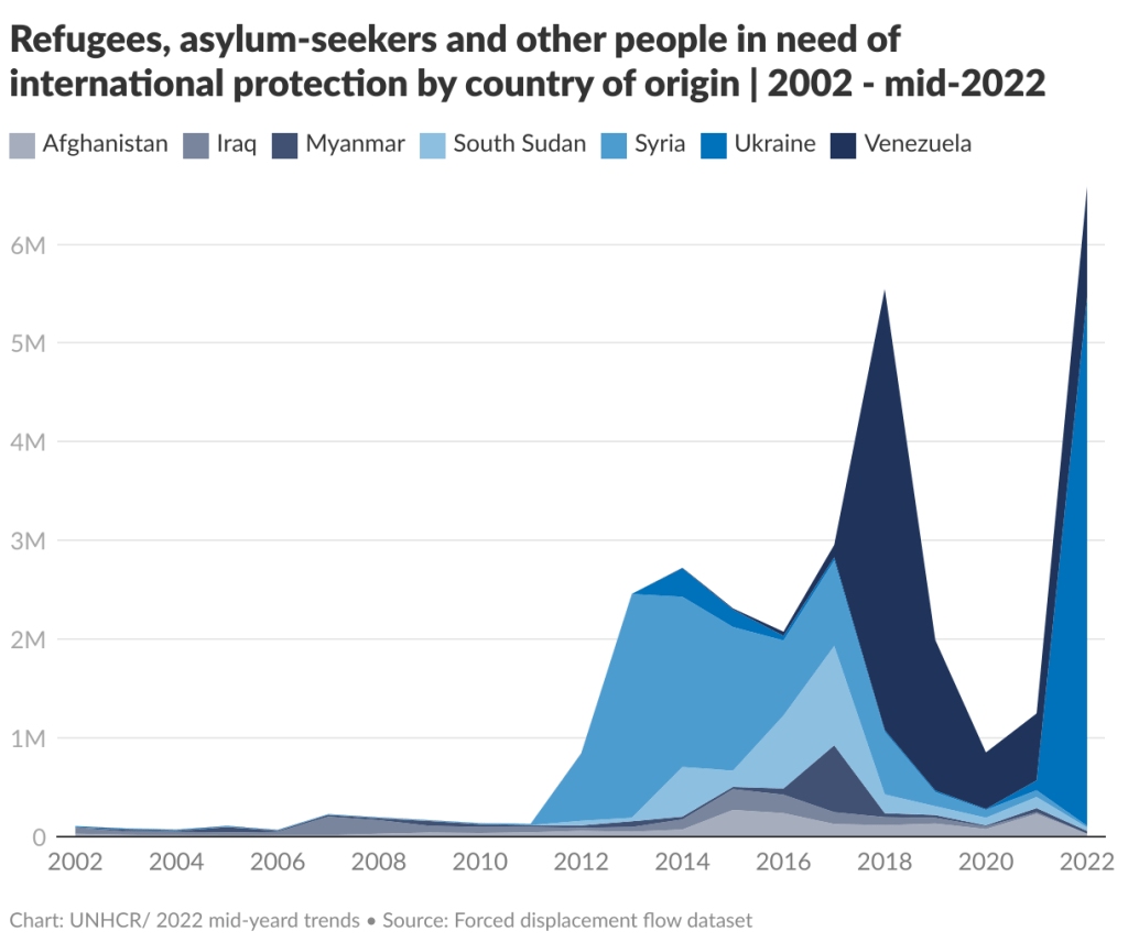 Accidents like this have become all too common as those fleeing war, violence, human rights violations, persecution and other dangers desperately seek safety. About 100 million people fled their homes and countries last year, and the UN’s refugee agency predicts that number to rise to 117.2 million displaced and stateless people in 2023. (See https://reporting.unhcr.org/globalappeal2023.)