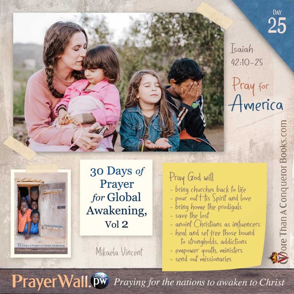A full-color book, 30 Days of Prayer for Global Awakening, Volume 2, is available in both paperback or pdf format (for Kindle and other devices) at MoreThanAConquerorBooks.com.