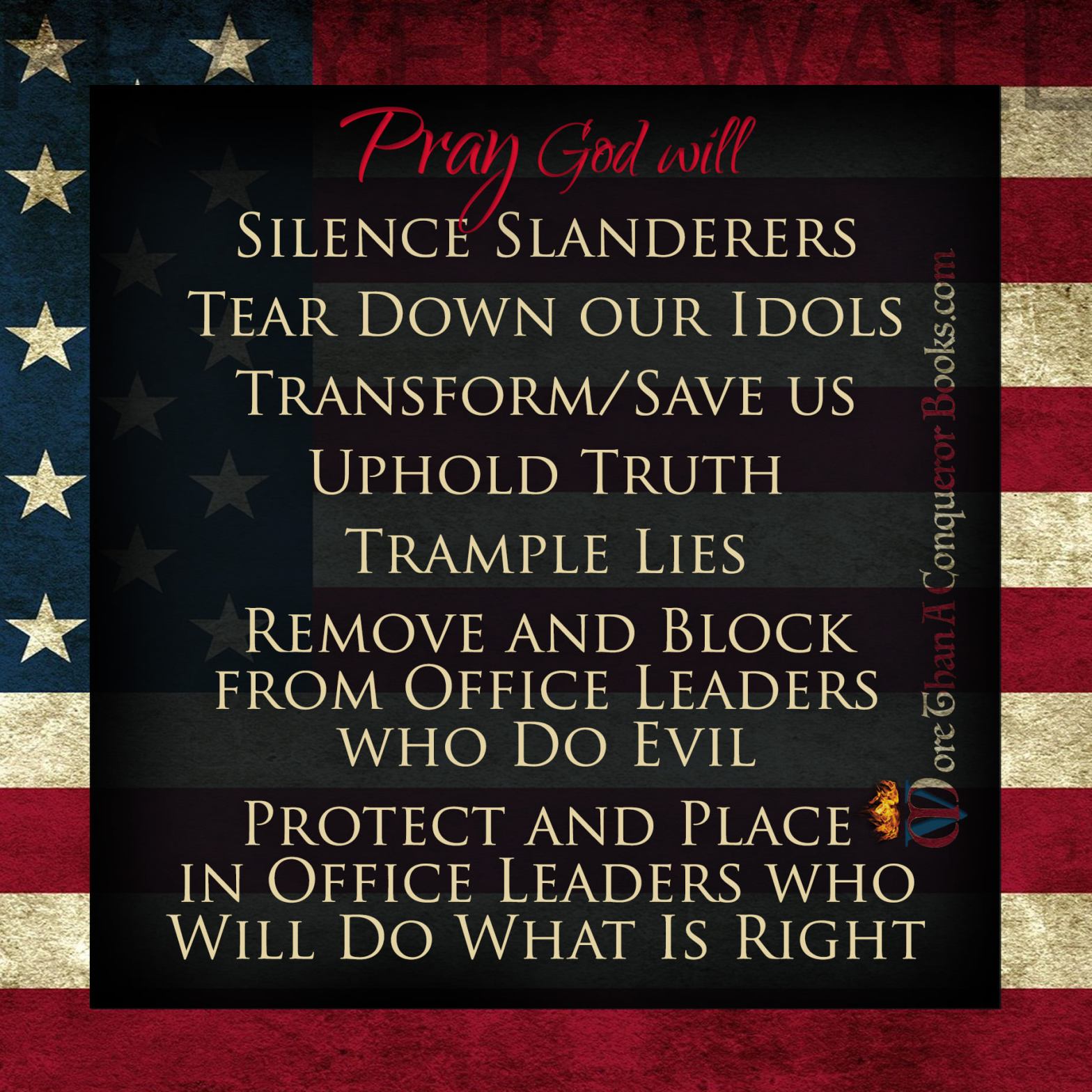 Lord, so many think themselves wise but are consumed with personal ambition, greed, and slandering and promoting lies. Please tear down every idol, and give those in office and running for office a deep hunger for You, O God. May they seek the only One whose name is both Truth and Wisdom. Awaken them to Your love and grace. Yes, pour out Your love and truth over our President and the candidates who are running for that position, over every member of Congress, the Cabinet and all branches of the government in the nation and in every state. Bring down pride and move those in positions of leadership to help and protect the people of this nation, not oppress and harm them.