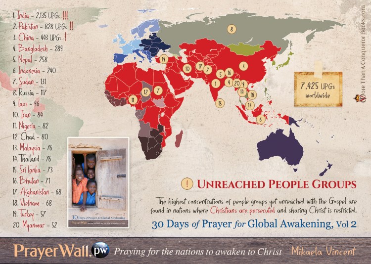 We’re not only praying for Muslims, but for all unreached peoples in every country. Check out this map: