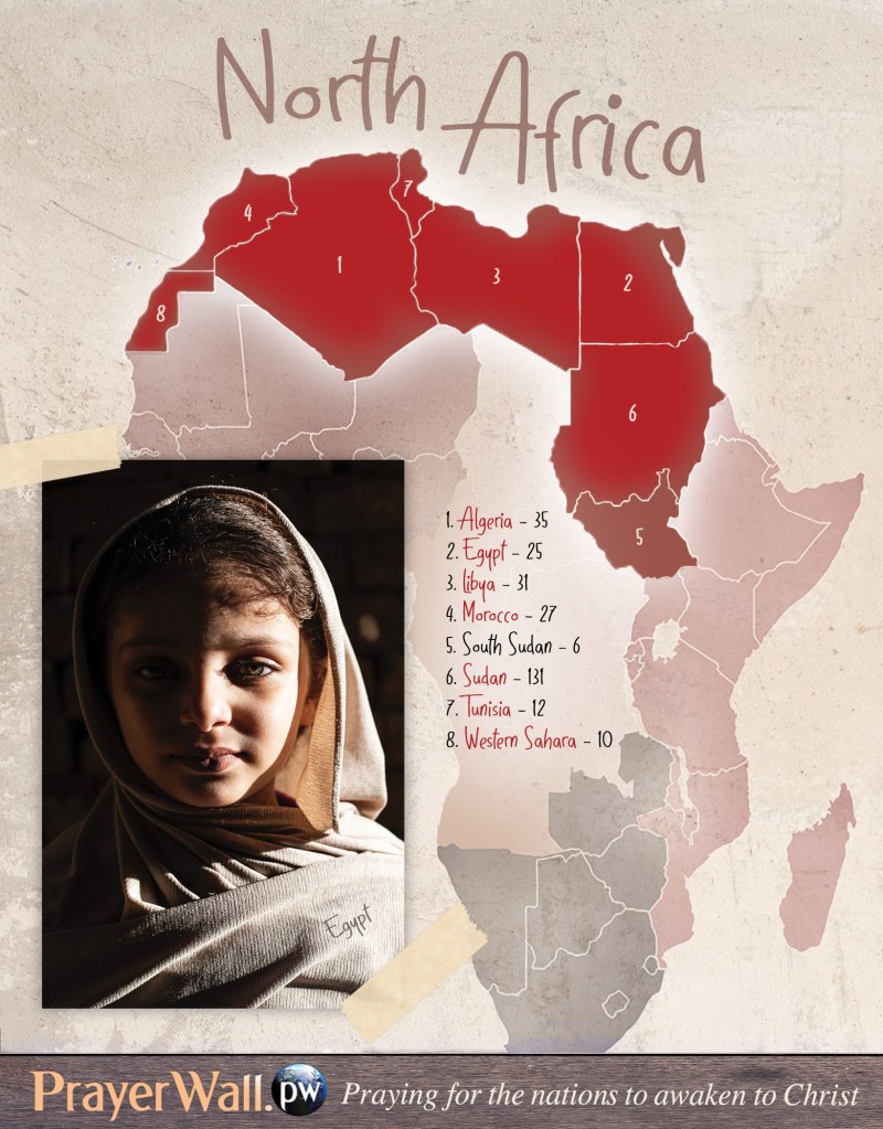 Father God, long have Your people suffered in this region. Please have mercy. Make a way of escape for those who are enslaved. Heal the wounded and broken. Comfort those who mourn. Give hope, faith and courage to Christians and protect them from harm. Empower them to shine Your love so brightly those who walk in darkness will be drawn to You like moths to a flame. For every believer who has lost home or property, we ask You, Lord, to bless them 100-fold. For every family mourning the loss of a loved one, we ask You to multiply their joy with whole villages coming to faith. For every church that is attacked, plant 1,000 more. Rescue women and children from abuse and prostitution. Pursue their abusers relentlessly until they repent and surrender to Your love. Rescue those who are in danger, hide them from opressors who seek to do them harm, provide for all their needs, and bring forth justice. Cast out the darkness with Your glorious light, O God. Make a way for those who do not know You to at last hear Your Good News and believe. Set those bound to demons free. Give Muslims a deep hunger for Truth. May they drop their weapons and hatred, seek the God of Love, and find You. Meet them in their dreams. Talk to them throughout the day. Connect them through social media to Christians and a Bible so they can hear the truth, and give them courage to follow You, even knowing it could cost them their jobs, families, and lives. Awaken North Africa to Your love. Make streams of Living Water flow throughout the desert of people’s hearts, and bring forth abundant LIFE.