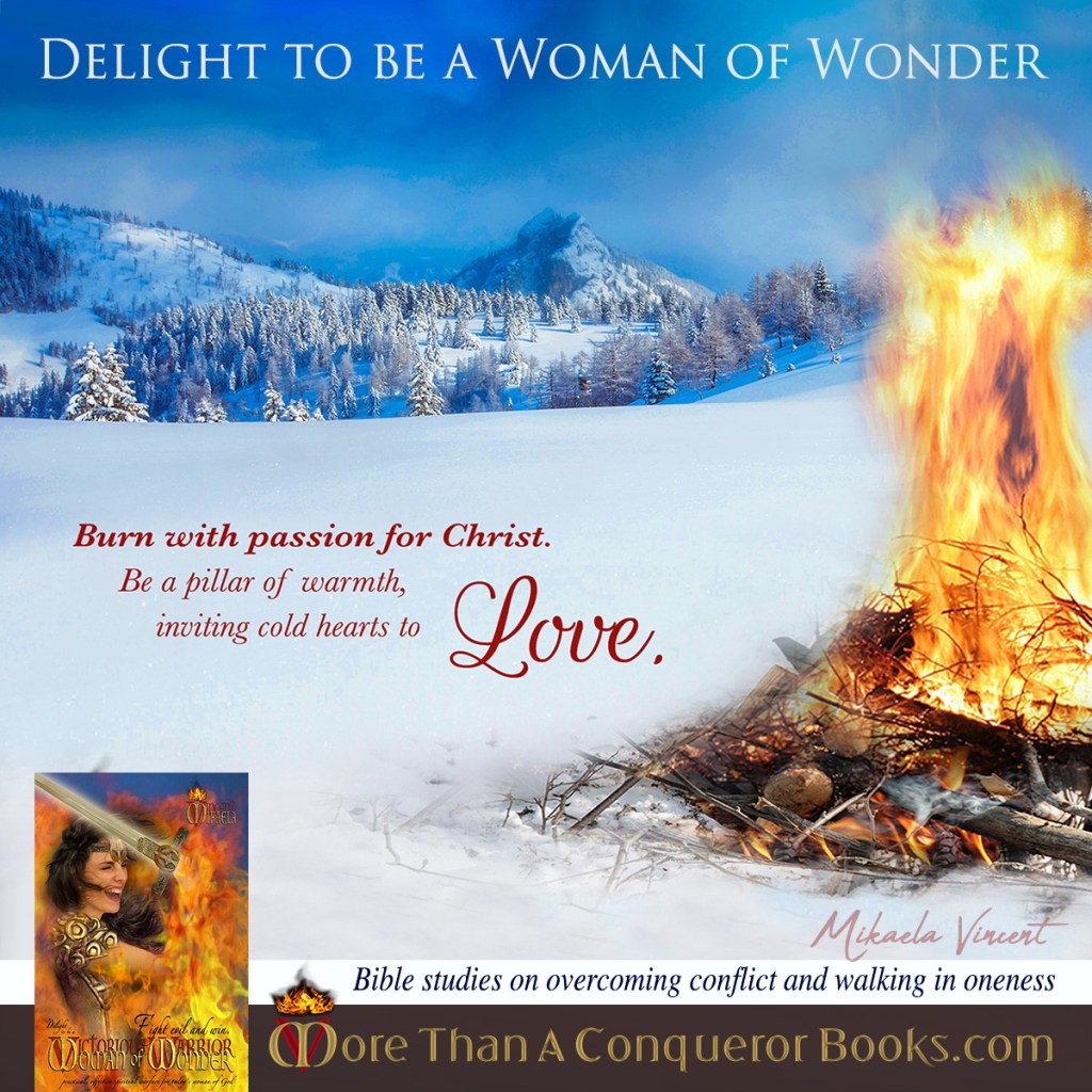 For deep Bible studies on receiving God’s great love, overcoming conflict and loving others well, see Delight to Be a Woman of Wonder or the men’s version, Dare to Be a Mighty Warrior by Mikaela Vincent at MoreThanAConquerorBooks.com.