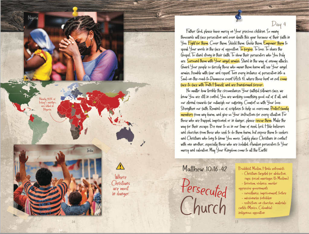 A month-long prayer journey with gripping photos, colorful maps, “sticky note” prayer points and powerful warfare prayers for every heart in every nation to awaken to Christ’s love.