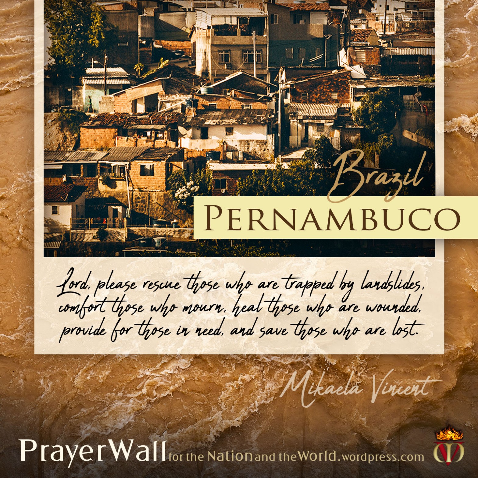 Thousands of people from the favelas (hillside shacks) in Pernambuco, Brazil, have been displaced; about 100 have died, and at least 14 are still missing after landslides Friday. Loving Father, please rescue those who are trapped, heal those who are injured, comfort those who mourn, provide for those in need, and rebuild the lives ofContinue reading “Deadly Landslides in Brazil”