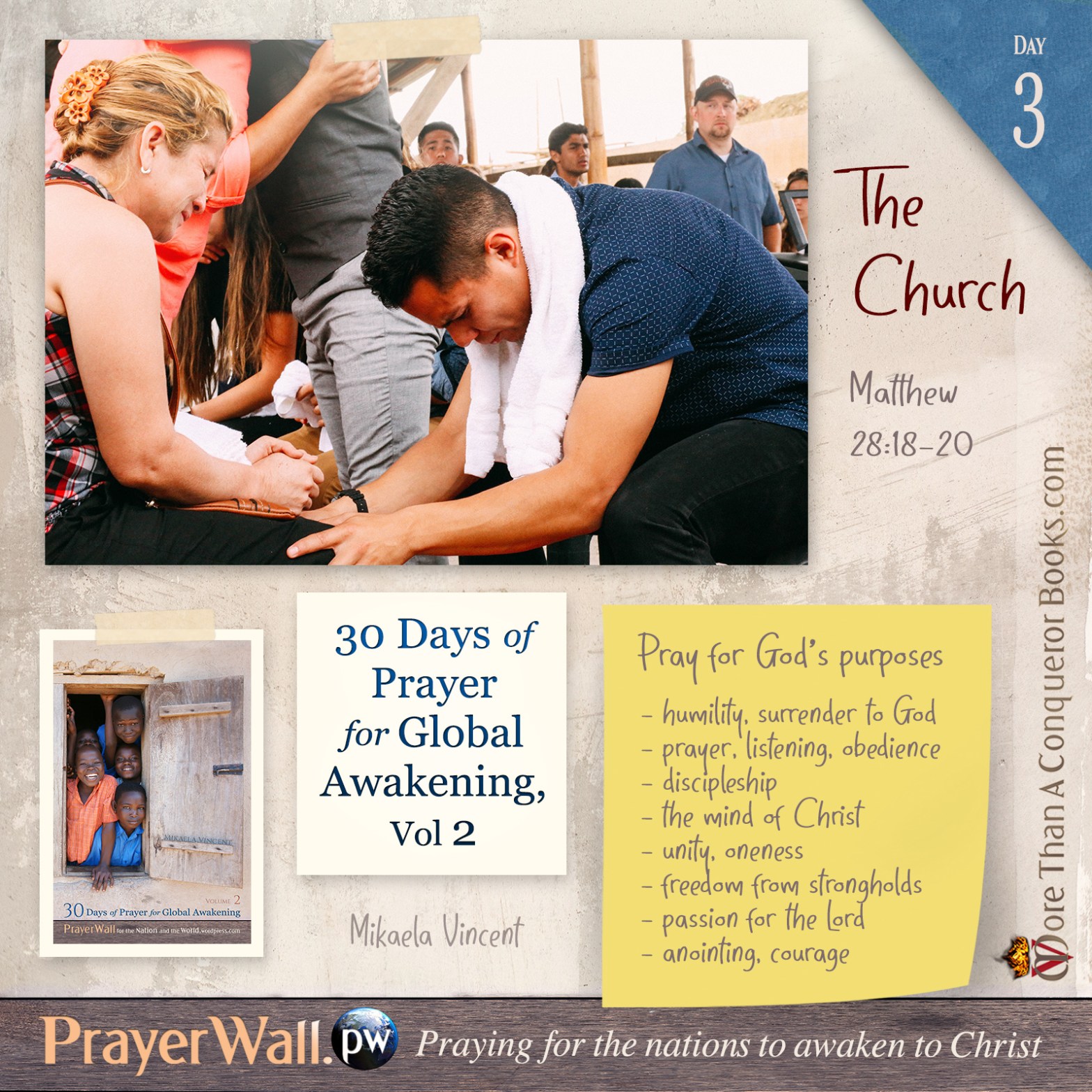 30 Days of Prayer for Global Awakening Verses for contemplation: Matthew 28:18-20 The deeper the darkness, the brighter His Light shines in the midst of it, drawing all men to Himself. Let’s join together today to pray for the church to be that light. Suggested topics for prayer: Prayer starter: Father God, please forgive usContinue reading “Day 3: The Church”