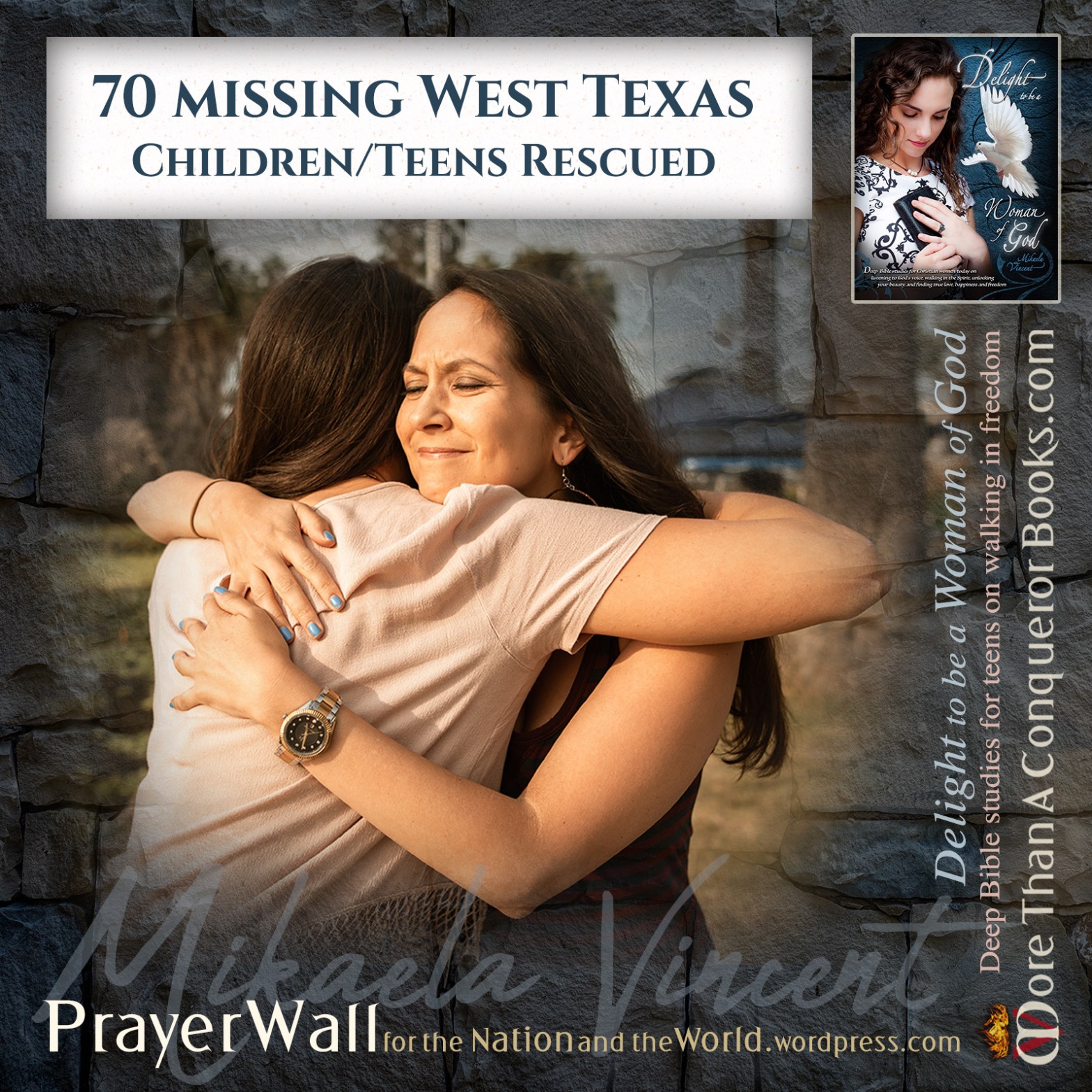West Texas and other law enforcement officers rescued 70 missing children ages 10-17 from sex trafficking last month through a three-week joint task force mission called “Operation Lost Souls.” Father God, we praise You for these rescued children and for those on the joint task force who worked together to make it happen. Please healContinue reading “70 Trafficked Children Rescued!”