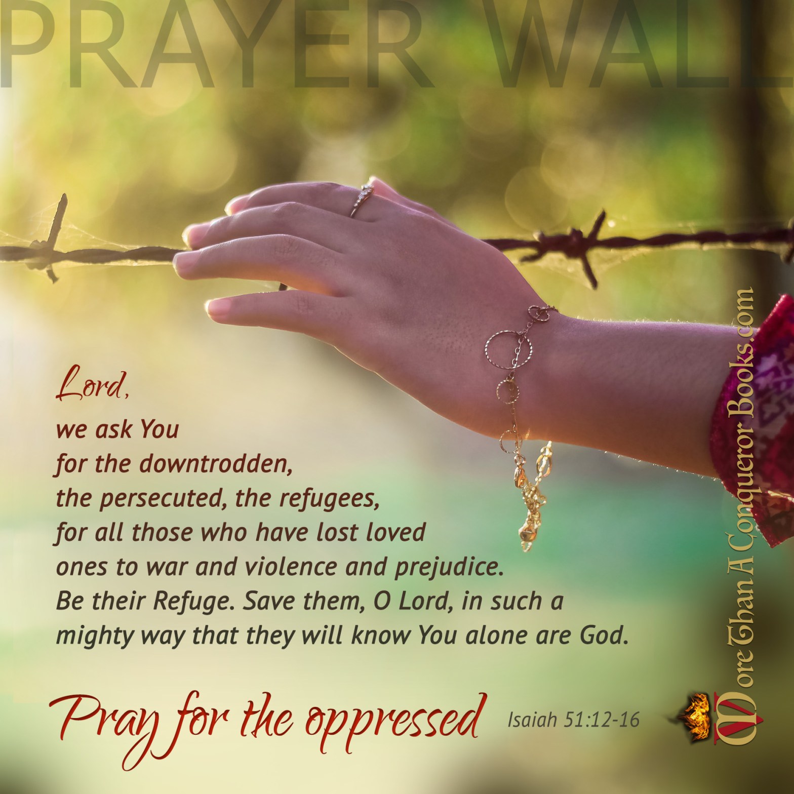 A prayer from Isaiah 51:12-15: Lord, we ask You for those throughout the world who are oppressed. Comfort them. Meet them in their anguish, and show them Your great love. May those who have had no way to hear about Your salvation experience it now, Lord. For You are their Creator. You formed them toContinue reading “Prayer for the Oppressed”