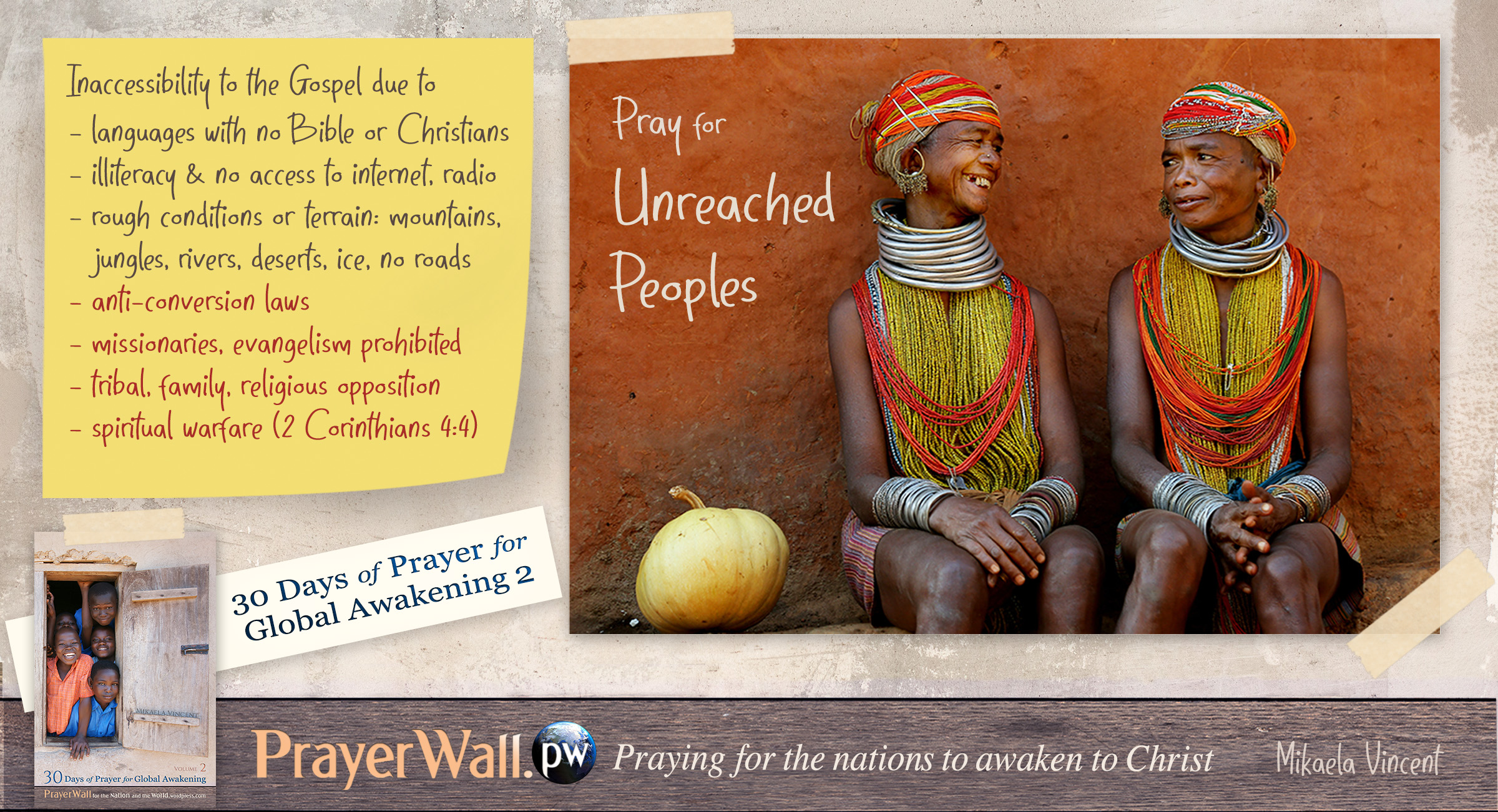 Join us for the International Day of Prayer for the Unreached on Sunday, May 24, 2026 “And this gospel of the kingdom will be proclaimed throughout the whole world as a testimony to all nations, and then the end will come.” Matthew 24:14 ESV Did you know that 1/3 of the world has been denied access to the Good News? That’s right. About 3 billion people … Continue reading Unreached Peoples